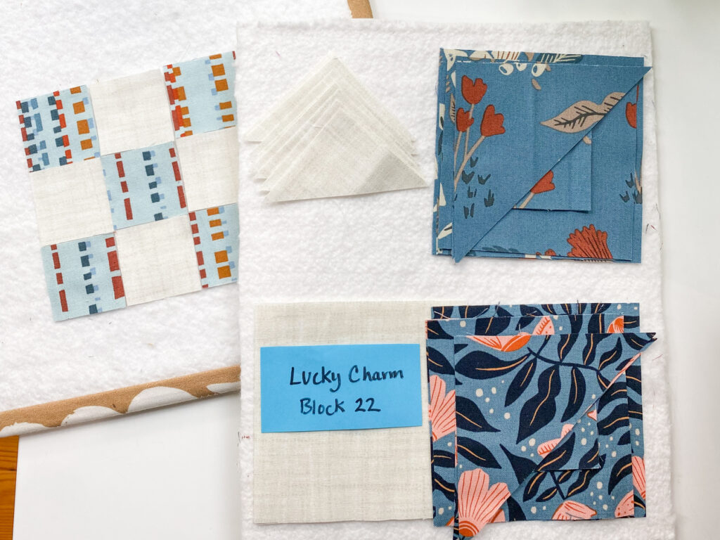 Design boards are such a great way to keep your pieces organized and easily carry them from your cutting table to your sewing machine. I learned how to make these from a Lori Holt tutorial on YouTube. You can also find pre-made ones from Riley Blake Designs, but they’re easy (and fun) to DIY using dollar store foam boards, a bit of leftover batting, and some binding scraps.