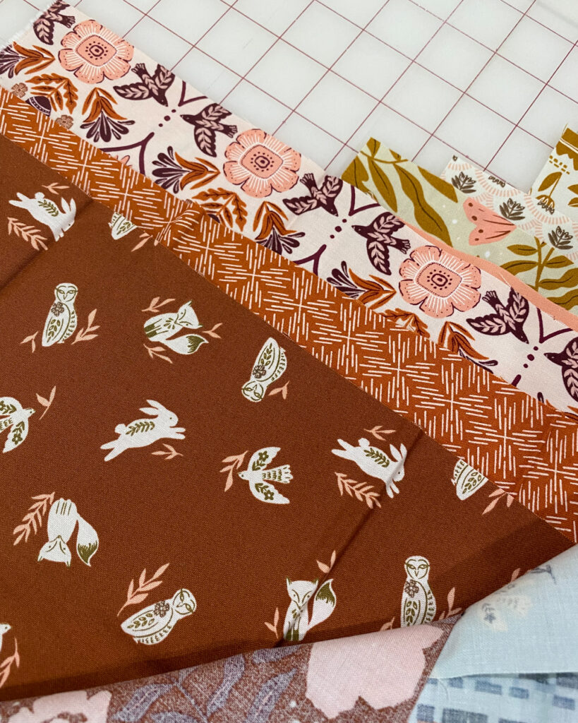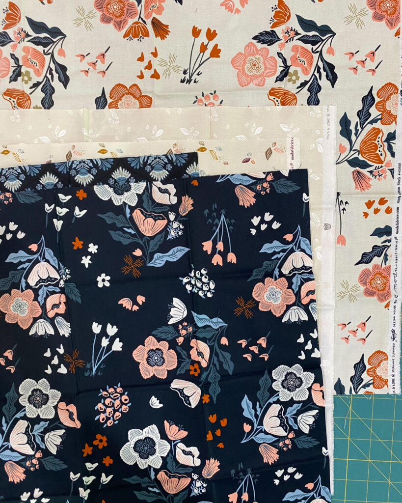 This year, I knew I wanted to do something a little more intentional. I decided to use a fabric collection from Moda Fabrics to show some support for their designers (even though I don’t carry Moda in my shop just yet—maybe someday!). I came across the Folk & Lore collection by Fancy That Design House, and I immediately loved it. The mix of blue, gold, and creme is right up my alley right now.